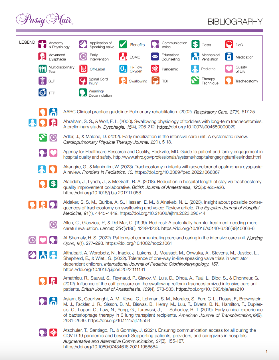 Conference Resources Clinical Resources Accessories and Connections Guide Ventilator Terminology Guide Troubleshooting Guide Dysphagia Therapy Chart Publications Adult Bibliography Pediatric Bibliography Product Information Accessories and Connections Guide Products Guide PM-APF15 Filter Handout PM-HME Handout Educational Resources Education Handout Patient Education Handout PMV Use Visual Guide Physicians’ Benefits Guide TRACHTOOLS